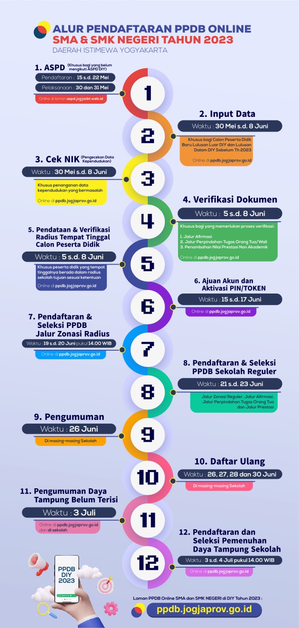 Berikut ini alur PPDB SMA/SMK Negeri Daerah Istimewa Yogyakarta Tahun 2023